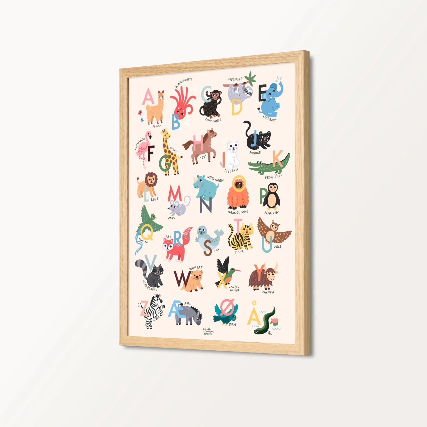 Printet er af højeste kvalitet og har en lækker laminering, hvilket giver et smukt udtryk og sikrer at fedtfingre nemt kan fjernes med en klud. Dermed er der heller ikke glas i rammen, som både kan blive fedtet, reflektere og gå i stykker på børneværelset.